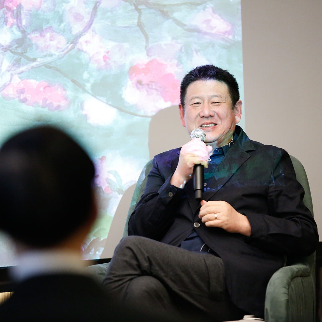 The event was a unique opportunity to present the famous Chinese contemporary artist to art lovers in a more personal, direct way. The artist also introduced the audience to the colourful nuances of his new Peach Blossoms series.