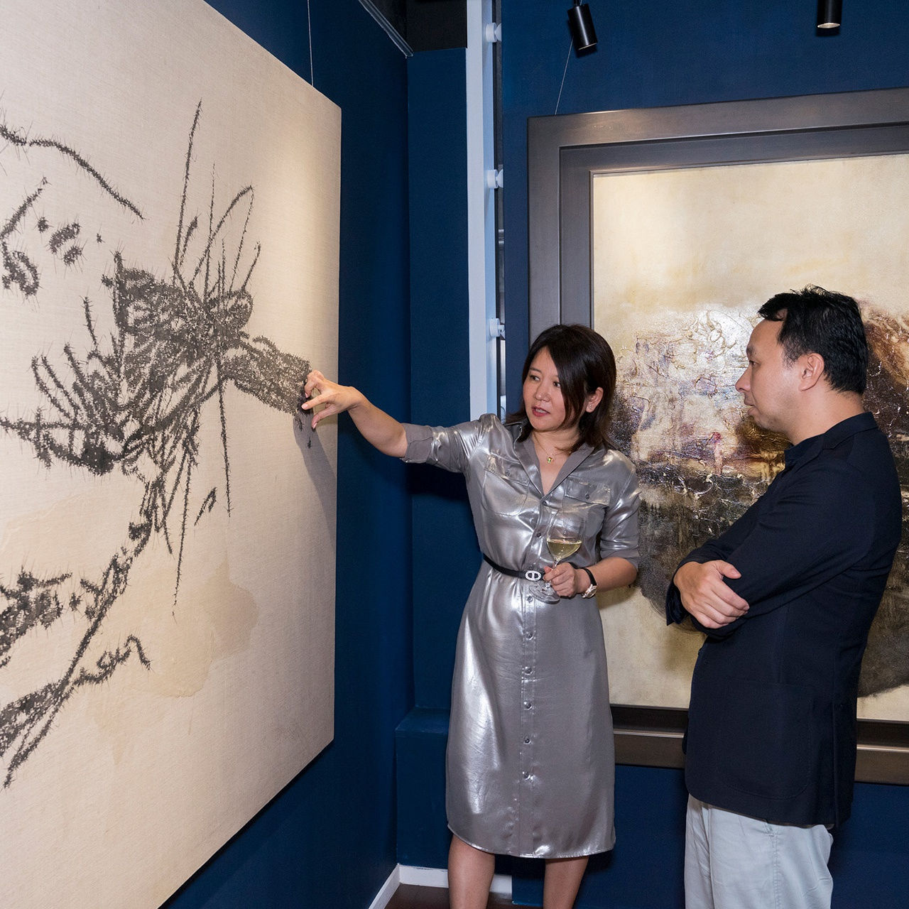 At the private art appreciation party, our goal was to show the works of our four artists to the collectors. Amanda Wei personally explained artists' stories, their process of creation, and techiniques used for each particular artwork.